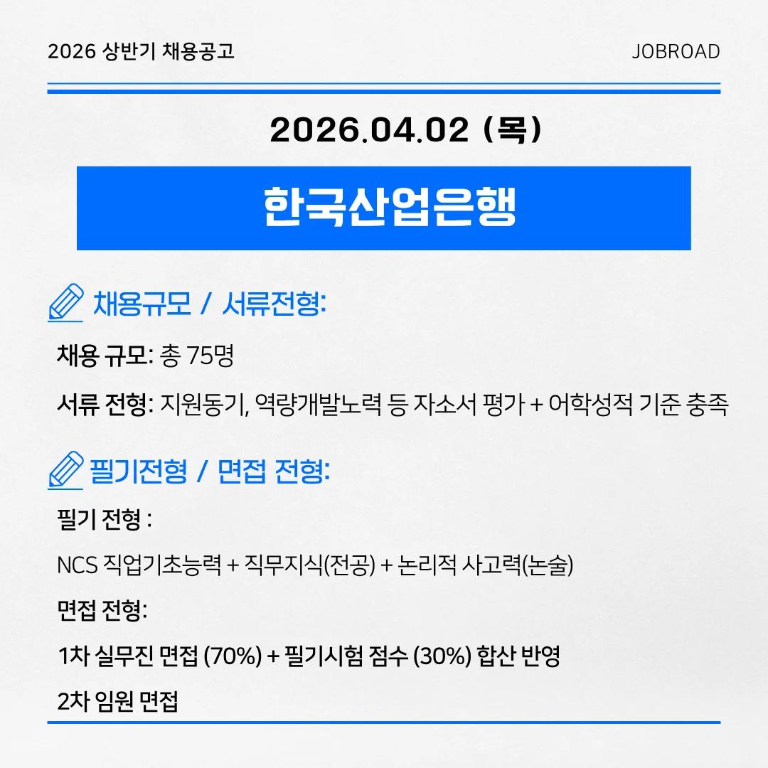🏢 한국산업은행 2026 하반기 5급 신입행원 공채